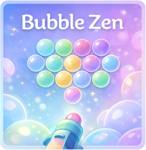A peaceful bubble shooter with no timers, no stress, and no losing.